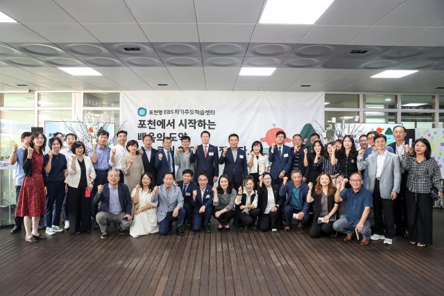 지난 25일 포천형 EBS 자기주도학습센터 개소식을 갖고 관계자들이 기념촬영을 하고 있다