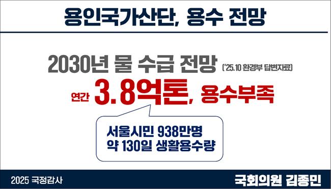 김종민 “2030년 한강권 물 3.8억 톤 부족... 600조 용인국가산단, 지속 불가능” - 환경부 국감자료 “2030 한강권 물 부족 3.8억톤”… 서울시 4개월치 규모 - “전력·용수·RE100 모두 불안… 반도체 경쟁력 자체가 흔들릴 것” - “용인 산단 재검토하고, 수도권 R&D·비수도권 생산 중심 ‘K-트라이앵글 전략’ 추진해야”
