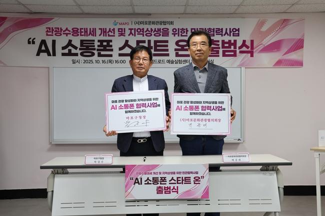 마포구(구청장 박강수)는 10월 16일 오후 4시, 레드로드예술실험센터 2층 세미나실에서 `AI 소통폰 스타트 온(Start ON)` 협력사업 출범식을 열고 외국인 관광객과 상인의 소통 강화를 위한 민관 협력의 첫발을 내디뎠다.
