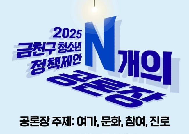 금천구(구청장 유성훈)는 25일 오후 1시 금천구청사 12층 대강당에서 2025 금천구 청소년 정책토론회 `N개의 공론장`을 개최한다고 밝혔다.