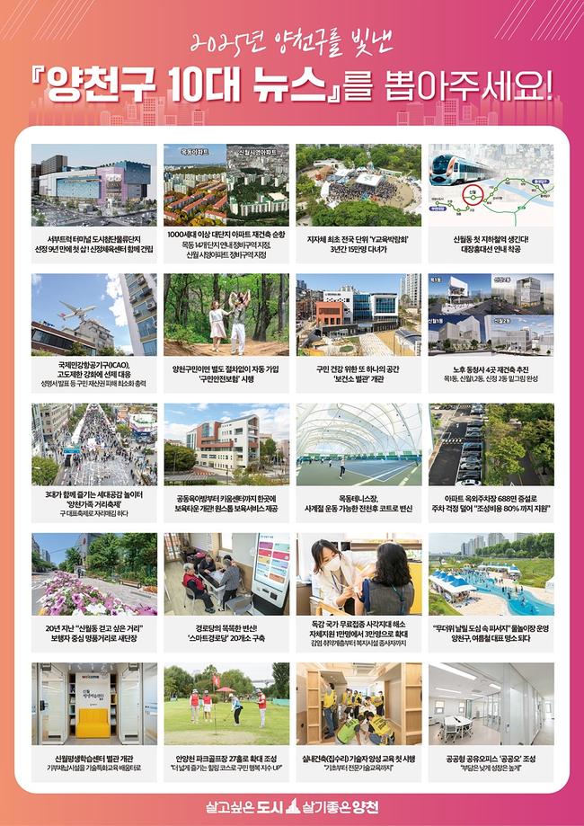 `양천구 10대 뉴스 선정`은 한 해 동안 추진된 주요 정책을 되짚어보고, 구정에 대한 구민의 관심을 높이기 위해 매년 시행되고 있다.