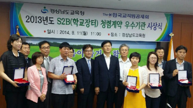 2012년부터 매년 개최하는 “S2B학교장터 청렴계약 우수기관” 시상은 2013년 한 해 동안 S2B 이용실적이 우수할 뿐만 아니라 S2B를 통해 효과적인 계약업무 진행으로 소액 수의계약부문의 투명성을 높인 교육청 2곳, 교육지원청 16곳, 초중고 60곳 등 총 78개 교육기관을 대상으로 각 시·도교육청별로 이 달 말까지 시상할 예정이다.