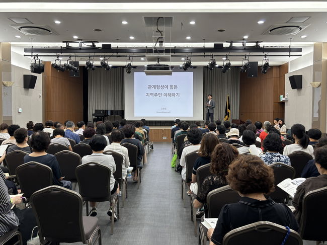 강의는 서울시동부노인보호전문기관 고진선 관장이 맡아 ‘관계형성이 힘든 지역주민 이해하기’를 주제로 진행했으며, 우울·자살·알코올 중독 등 위기 상황을 겪는 주민들의 사례 접근과 상담 방법, 위기 대응 방안 등이 다뤄졌다.