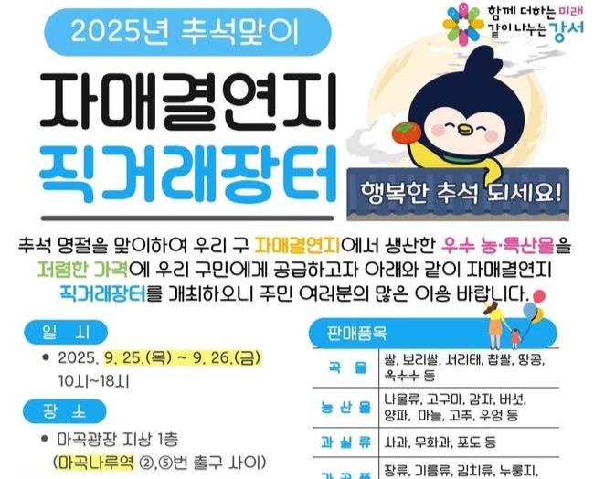 서울 강서구, `추석맞이 자매결연지 직거래장터` 25일부터 이틀간 운영