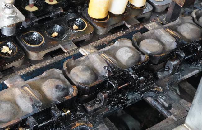 휴게소의 위생불량상태인 호두과자 기계 (기름찌꺼기, 기름때가 제조기계 안으로 유입) 출처 : 권영진의원실, 고속도로 휴게소, 촬영 2025.10.03.